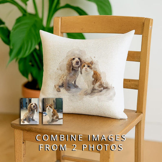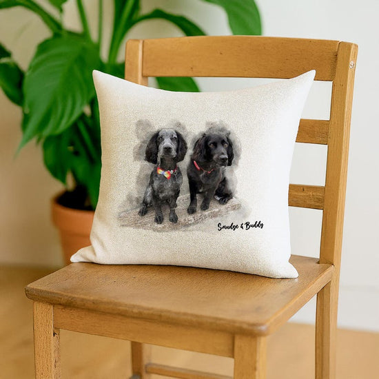 Custom Pet Pillow – Personalised Watercolour Dog Portrait from Photo