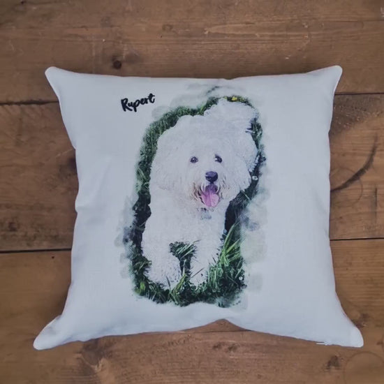 Are you looking for the perfect gift for a dog/pet lover? Look no further than our Custom Pet Pillow! This personalised pet cushion features a beautiful watercolour portrait of your furry friend, created from a photo you provide. This custom pillow is the perfect addition to any pet lover's home. Measuring 40 x 40cm, our pet portrait pillow is made from durable, high-quality materials made in the UK for extra softness and long-lasting use (plus all the fire safety you'd expect from a UK-made and based product!).