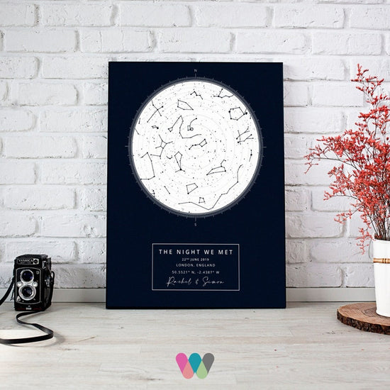 Bring the beauty and wonder of the night sky into your home with our custom star map print. Perfect for anniversaries, weddings, or any special occasion, this personalised gift is sure to make a lasting impression. Our star map captures the exact alignment of the stars on the night you met or any significant date of your choice, creating a unique and sentimental reminder of that special moment.