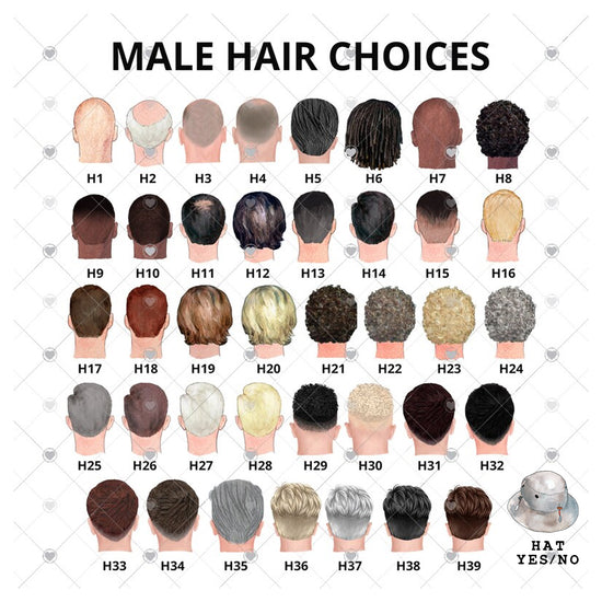 Choose from a selection of different hairstyles and hats to create a figure that best represents the man. If you have a specific change, please get in touch. We will always do our best to help or adjust the design to fit best.