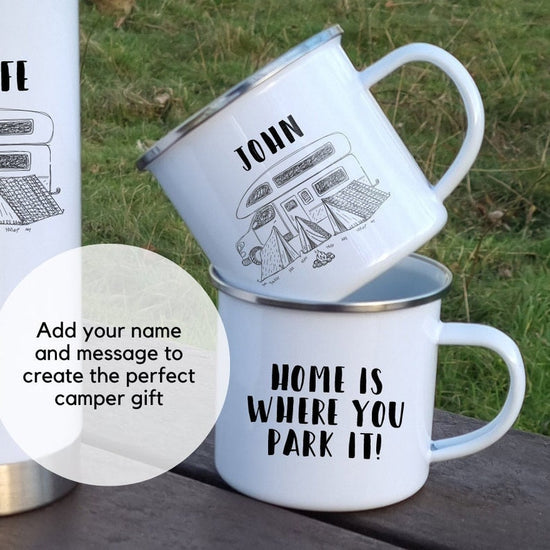 This Camper Van Cup and Flask Gift Set are a must-have for all motorhome enthusiasts. A perfect motorhome gift, caravan gift, or campervan gift that will add a lovely personalised touch to home on wheels!. The set is the ideal gift to enjoy those lovely warm teas and coffees.