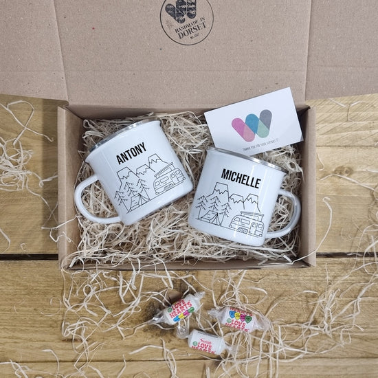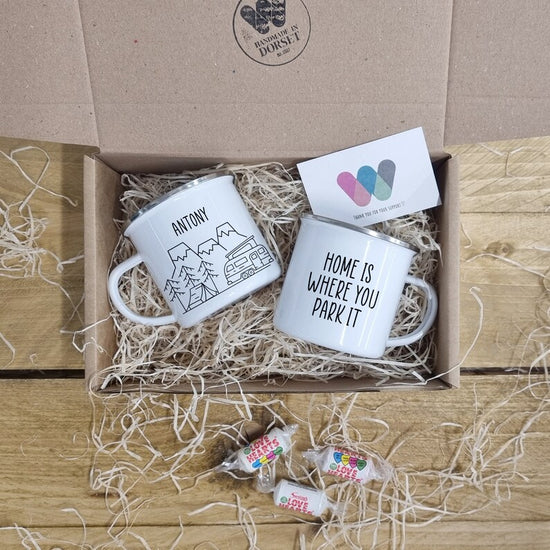 This Camper Van Cup Gift Set is the perfect present for those who love to travel and experience the great outdoors in their motorhome, caravan, or campervan. If you're looking for a unique and personalised camping gift, this gift set is sure to bring a smile to your loved one's face. Whether you're sipping on a warm tea or coffee, this set provides the perfect way to enjoy your favourite beverages while on the road.