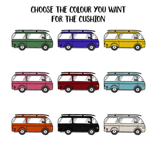 Bring the adventure and charm of the open road right to your home with our Personalised Camper Van Cushion! This high-quality 40x40 cm cushion features an adorable, hand-drawn camper van design—perfect for adding a touch of whimsy and wanderlust to your space. Crafted with premium, heavy canvas fabric in a subtle off-white shade, it offers both style and durability.