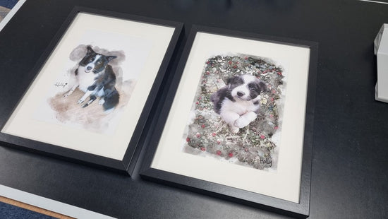 Turn your pet photographs into a beautiful hand-illustrated watercolour pet portrait! It's such a lovely way to display pictures of your pets on your walls - or a great gift for your home, or a perfect gift for a pet-loving friend or family member. Each photo is designed by hand in house by us - based in Dorset, UK.