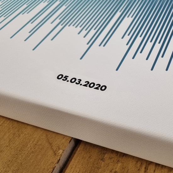 Create a one-of-a-kind gift by transforming your favourite song into a piece of art. Share the name of the song and artist with us and we'll convert it into a colourful waveform in a beautifully designed gift. Each print will also feature the title and artist's name for added personalization. A perfect present for anniversaries, birthdays and valentines.