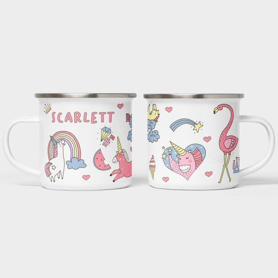 Introducing the perfect accessory for any unicorn lover! Our personalised tin mug features a beautifully crafted unicorn design that will make your child's morning milk or teatime drink even more magical. This mug is made of high-quality tin and has a durable enamel coating, making it perfect for use at home or on the go. The design is printed directly onto the mug using a special process, ensuring that it will not fade or peel over time.