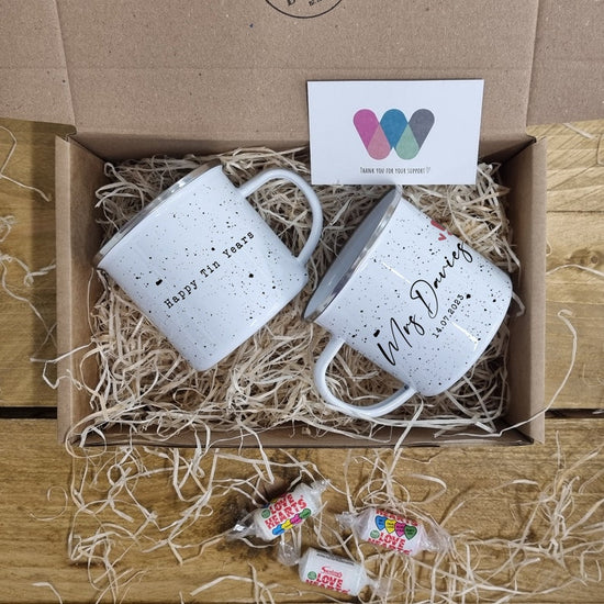 10 Year Anniversary Cup Set – Personalised Tin Years Gift for Couple