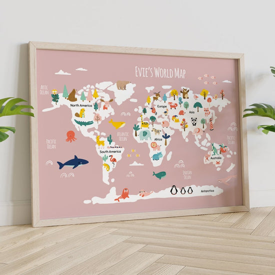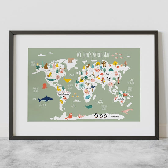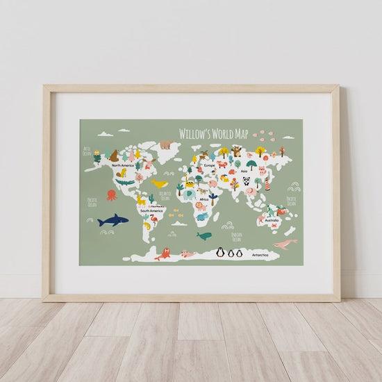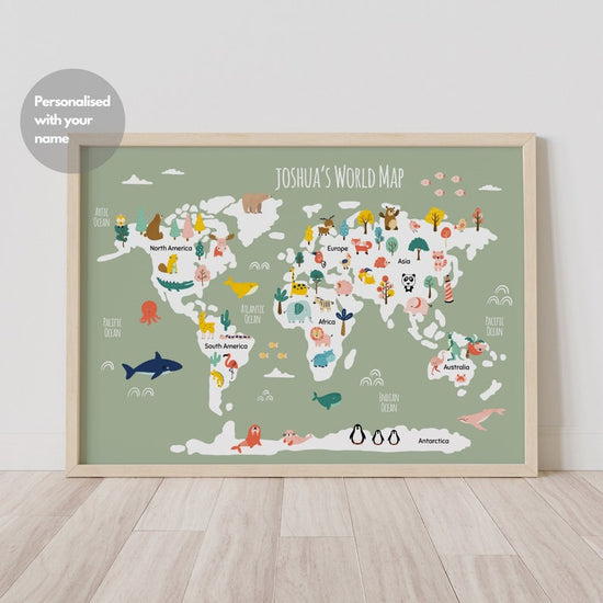 Personalised World Map Print – Kids Bedroom & Safari Wall Art